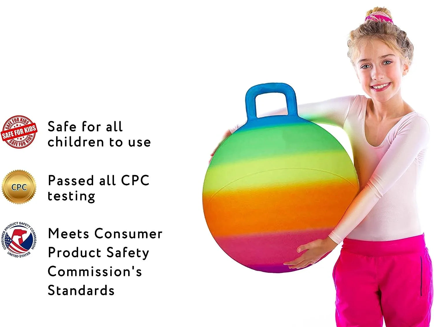 Trygg för barn att använda och utvecklad för lång hållbarhet. Stark konstruktion och förstärkt handtag för många timmars hoppande. Levereras med ett års garanti.