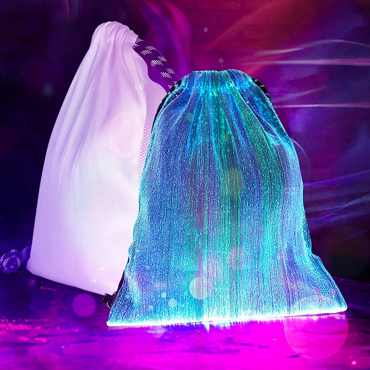 En framtidsinspirerad LED-ryggsäck med inbyggda fiberoptiska ljus som skiftar färg i upp till 11 olika lägen. Perfekt för kvällar, festivaler, events och resor – där du vill synas och sticka ut med stil.
