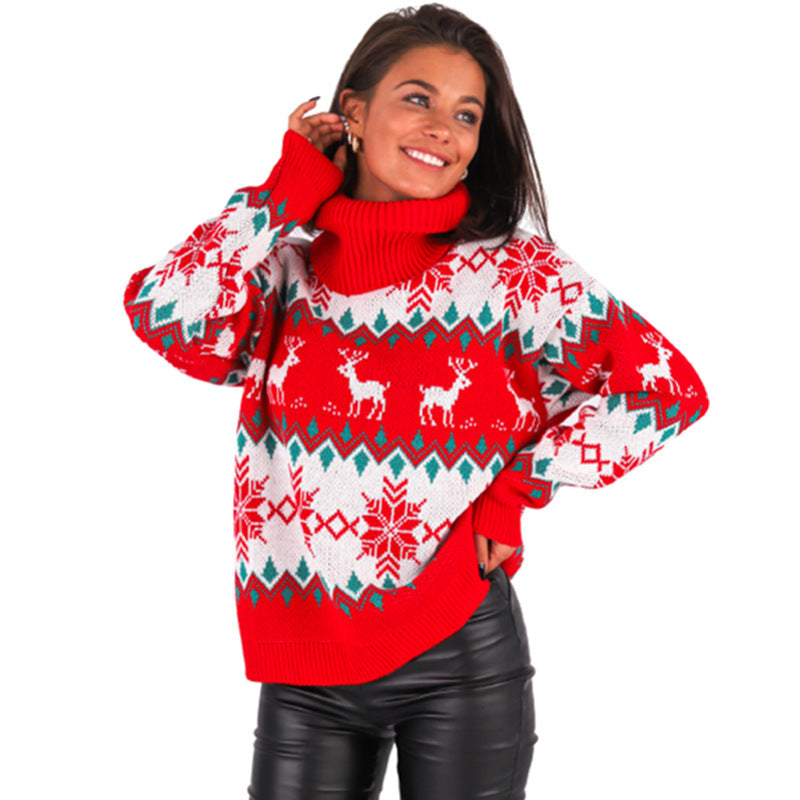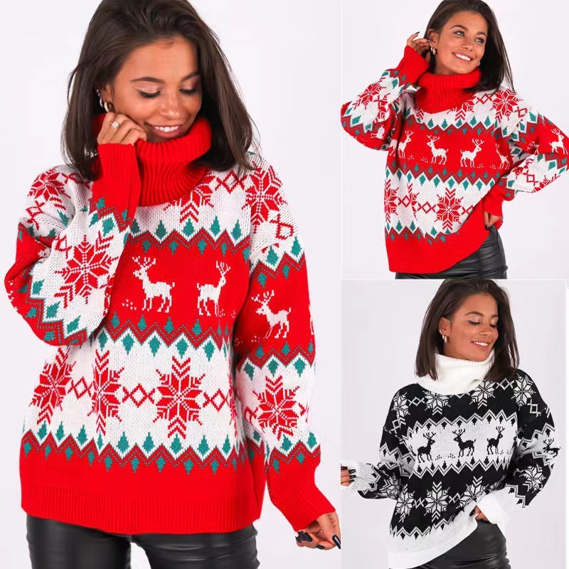 En varm och bekväm jultröja i polyester med jacquardstickat julmotiv som ger en tydlig och festlig decemberkänsla. Tröjan har en hög krage, lång ärm och en klassisk pullover-design som gör den lika mysig som den är stilfull. Perfekt för julfiranden, hemmamys, kontorets temadag eller vinterpromenader.