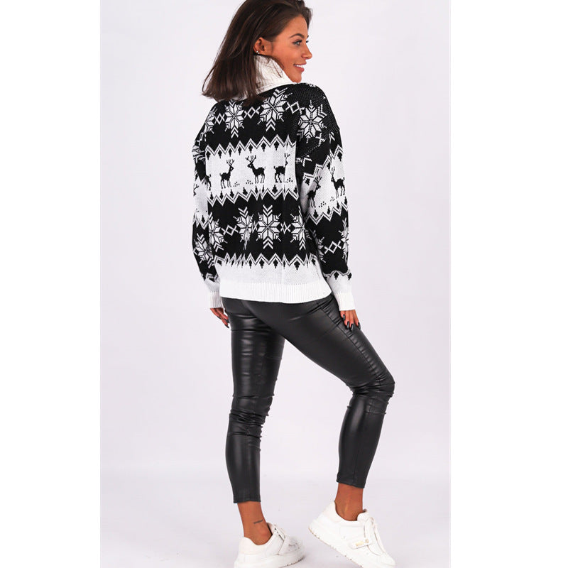 Jacquardstickad Jultröja – Hög Krage & Lång Ärm