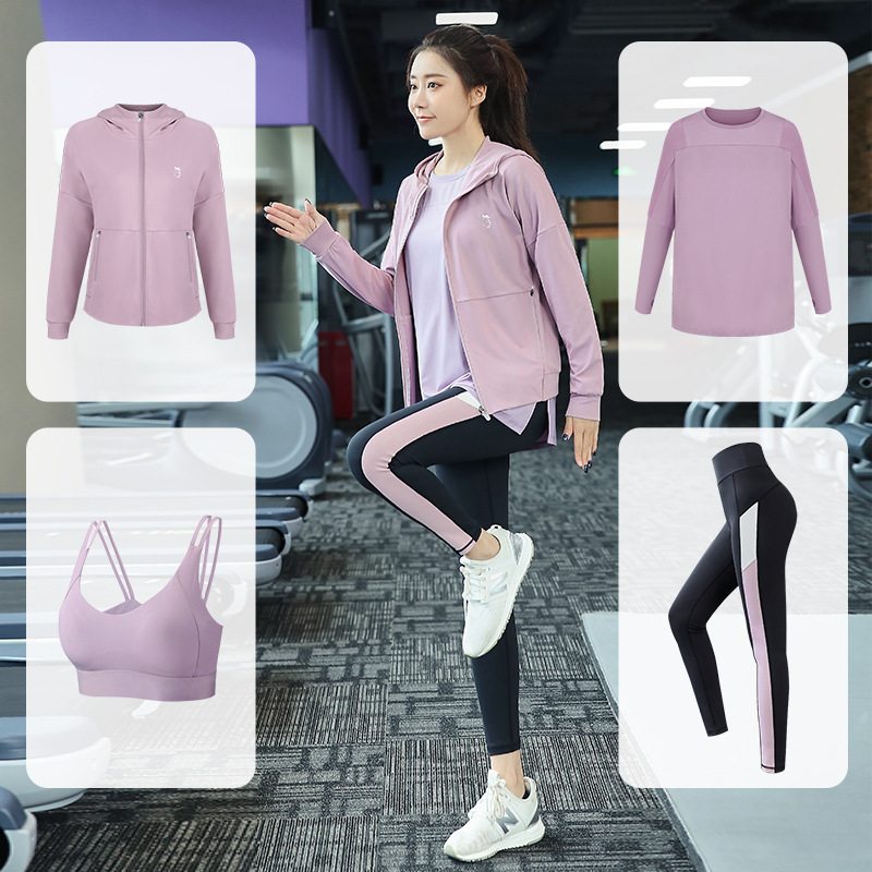 – 4 delar: jacka, sport-bh, långärmad tröja och byxor